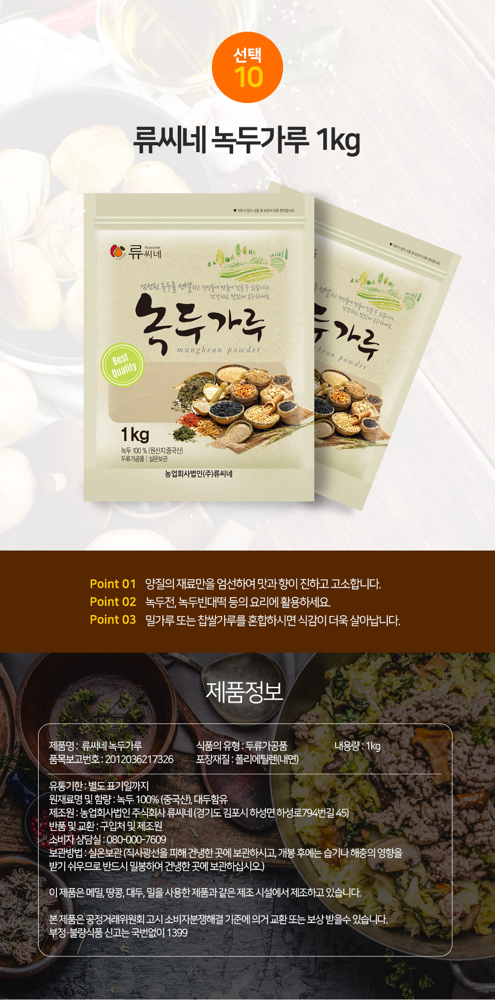 류씨네에서 직접 매입한 중국산 녹두만을 취급하여 가루로 곱게 가공한 녹두가루 입니다!
